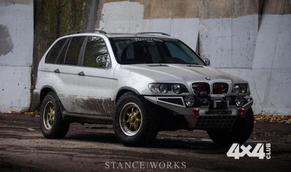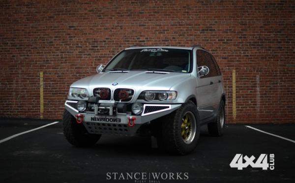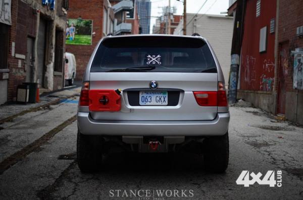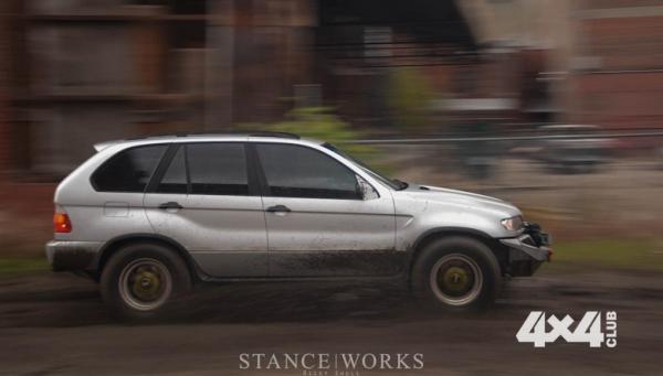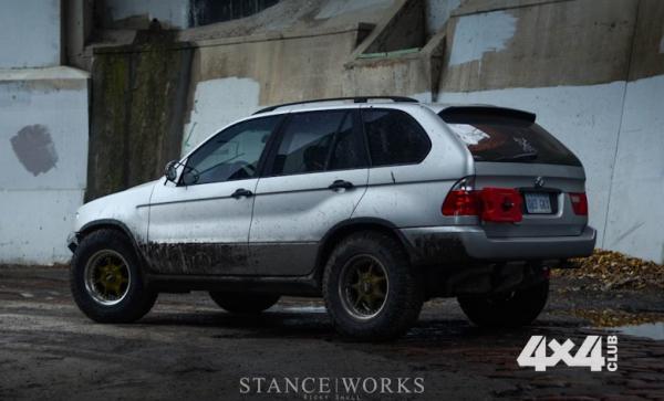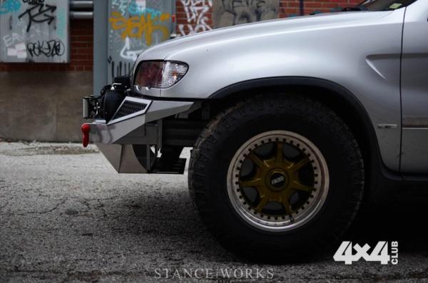 Первым делом, Тайлер избавился от колес. Теперь автомобиль ездит на 17-дюймовых BBS Rescue Green с черными болтами, оснащенных крутыми 33-дюймовыми покрышками. Необычный выбор для X5, не так ли? Но это еще далеко не все.