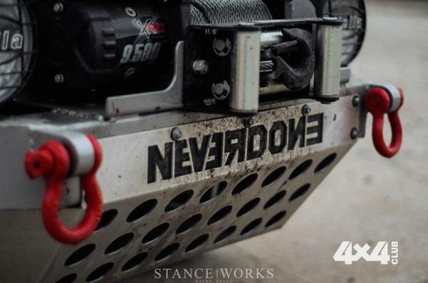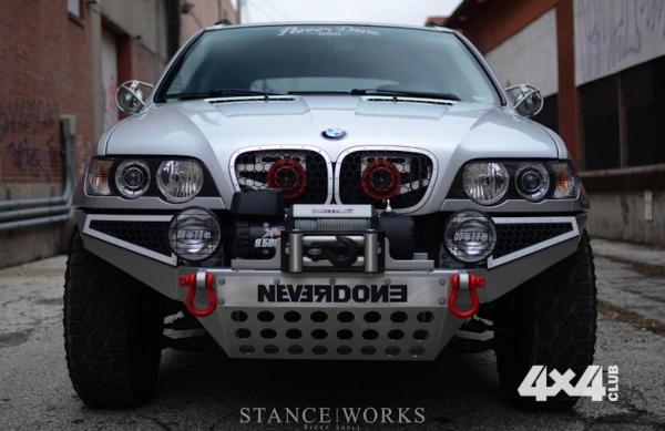 Тайлер настолько сильно загорелся этой идеей, что он создал свой собственный бренд дополнительных запчастей для BMW, который назвал “Never Done”. Крутой бампер, разработанный вместе с другом Райаном Лоуренсом, добавляет автомобилю агрессивного вида. Конечно, такой бампер не мог обойтись без дополнительных фонарей и лебедки. Радиаторная решетка тоже сделана Тайлером, и вписывается она просто отлично.