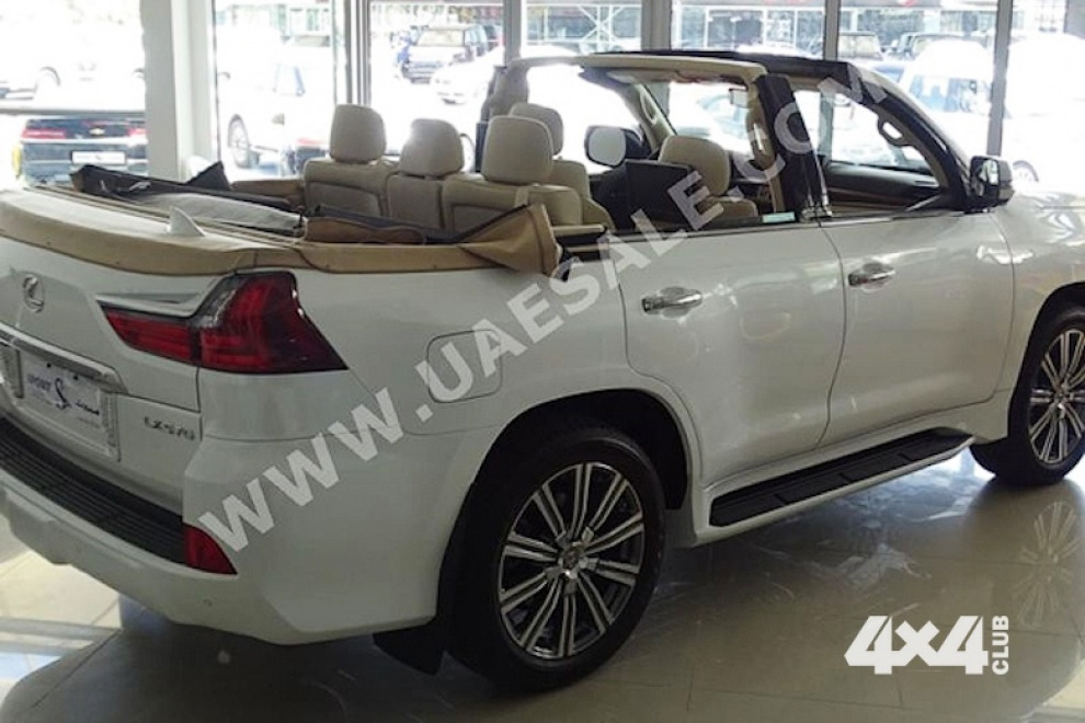 Дилерский центр в Объединенных Арабских Эмиратах выставил на продажу внедорожник Lexus LX 570, который превратили в кабриолет. Автомобиль, оснащенный мягким складывающимся верхом, оценили в 1,3 миллиона дирхам (около 350 тысяч долларов США).