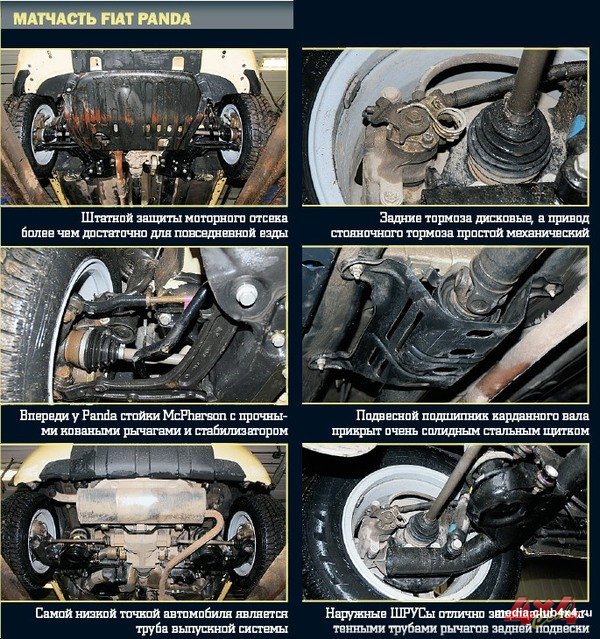 К нам Fiat Panda 4x4 поступает с одним двигателем – 1.2-литровым 60-сильным. В Европе большей популярностью пользуются версии с 1.3-литровым турбодизелем мощностью 70 л. с., но их там и самим не хватает, да и солярка отечественная... Наш бензиновый моторчик бодр и голосист, тяговит, но не слишком эластичен. Ему хватает тяги в довольно широком диапазоне оборотов, но мощность, увы, не позволяет поспевать за быстрым московским потоком и держать высокую скорость на шоссе. Да и чтобы стартануть как следует, надо изрядно коробкой передач потрудиться, благо передаточные числа сближены и в городских ускорениях до 70 км/ч проблем не бывало. Но сила Fiat Panda не в скорости, а в ловкости. Верткий он до азарта: на Panda можно очень даже похулиганить в потоке, шныряя по открывающимся «окнам». Тут есть только две проблемы: ужасная обзорность в боковые зеркала-пудреницы и отсутствие всякого уважения со стороны соседей по трафику. Частично недостаточный размер зеркал компенсируется отличным видом в салонное зеркало заднего вида и активным вертением головой. А вот парковаться – одно удовольствие: руль переключается в городской режим, что делает электроусилитель вдвое более мощным. Радиус поворота едва превышает 4.5 метра, обзор прекрасный. Одно плохо – капота не видно. Это неудобно и в тесных местах, и при езде по бездорожью. Что еще раздражает в Panda, так это шум, идущий от шин. Разумеется, вклад покрышек в эту какофонию не столь уж велик, солирует неровный асфальт под аккомпанемент жестких подвесок при попустительстве общей недошумоизолированности. Изредка сквозь все это прорывается задорный голосок моторчика.