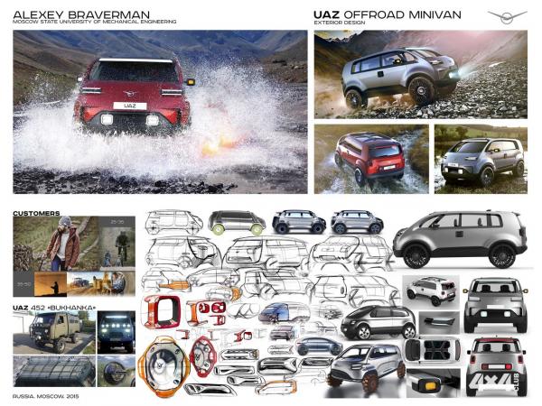 Специально для тех, кто считает, что создание нового концепта авто и запуск его в серию - это незатейливый и лёгкий процесс, в свободный доступ была выложена небольшая часть архива работ и материалов от Алексея Бравермана, студента Университета машиностроения (МАМИ), который разрабатывал проект новой Буханки заводу УАЗ в рамках дипломной работы.