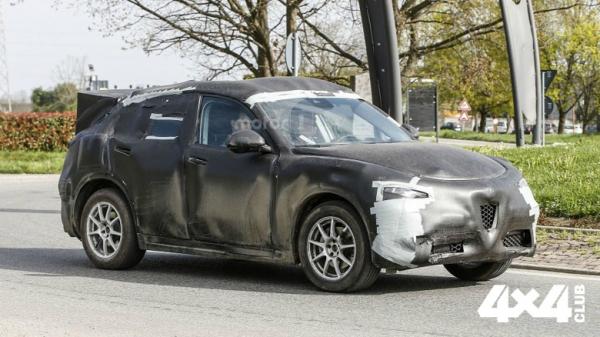 Первые шпионские снимки Stelvio появились в апреле 2016 года, на них задняя часть машины была скрыта специальной надстройкой. На новых фотографиях кроссовер так же плотно скрыт камуфляжем, однако теперь можно разглядеть силуэт багажной двери и форму задних фонарей.