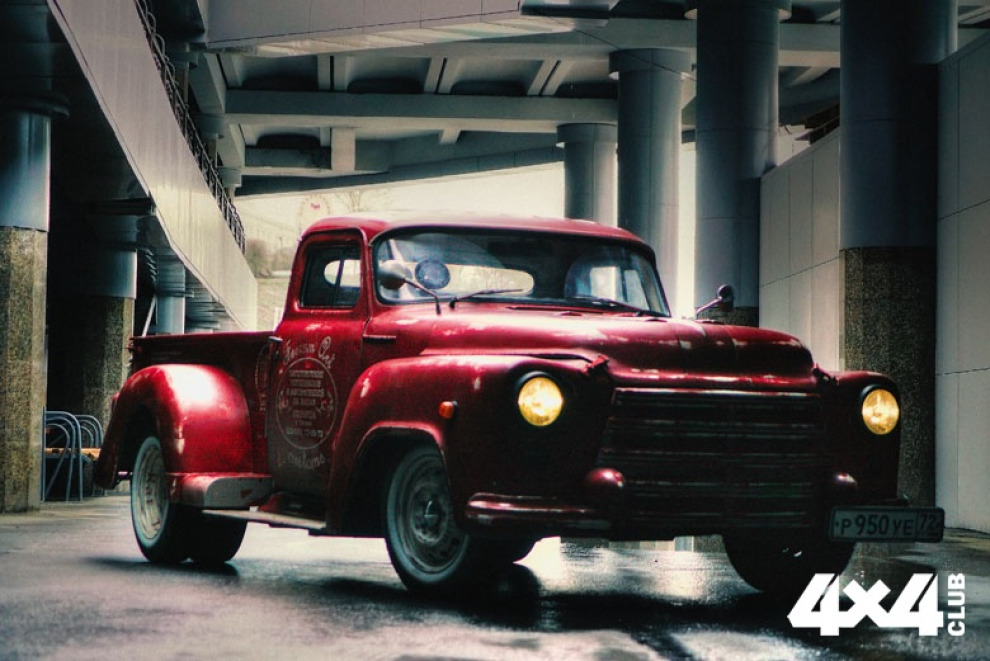 Во-первых, было решено, что нашим очередным кастом-творением должен стать пикап – функциональный автомобиль для владельца автомастерской. Сами понимаете, мотики надо возить? Надо. Детали всякие и железо – надо? Надо. И, конечно, неповторимый стиль 1950-х не помешал бы! Мне лично кажется, что это было время самых красивых автомобилей. Как говорится, прекрасная эпоха. В общем, с этим определились. Теперь нужно было решить, какие детали использовать в постройке. Просмотрев гигабайты интернета и специальной литературы, остановились на следующих донорах: рама «Газель», причём с документами (вдруг пригодятся), кабина ГАЗ-53 (удалось найти только списанную, без морды, зато в приличном состоянии), ну и двигатель V8 – 4 л., 260 лошадей с коробкой, мозгами и всеми делами от Toyota Celsior. Признаться, двигатель хотелось поставить правильный, американскую восьмёрку, но бюджет не выдерживал больших затрат, да и сама постройка затянулась бы на неопределённое время. Поэтому мы приняли сложное и, я бы сказал, неприятное для нас решение поставить японский движок. Переднюю подвеску подогнали от Chevy Niva. Рулевую рейку в результате проб и ошибок взяли от Subaru Impreza. Вообще, надо сказать, практически все узлы и агрегаты очень неохотно вставали на свои места. Но мы тоже упёртые, не сдавались, и в итоге всё начинало работать и крутиться так, как надо.