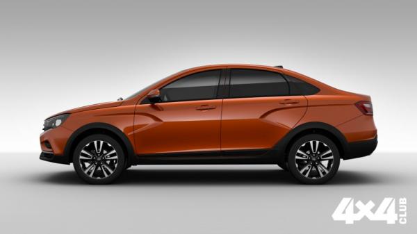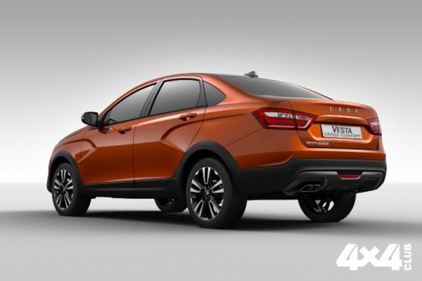 Lada Vesta Cross Concept отличается от стандартного седана увеличенным дорожным просветом, колесами большего размера, а также наличием пластиковой защиты нижней части кузова.