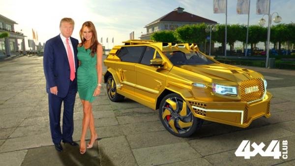 Компания Dartz Motorz распространила изображения, дающие представление о том, каким бы мог получиться автомобиль для Дональда Трампа. На снимке изображен 45-й избранный президент США вместе со своей женой, а также позолоченный внедорожник.
