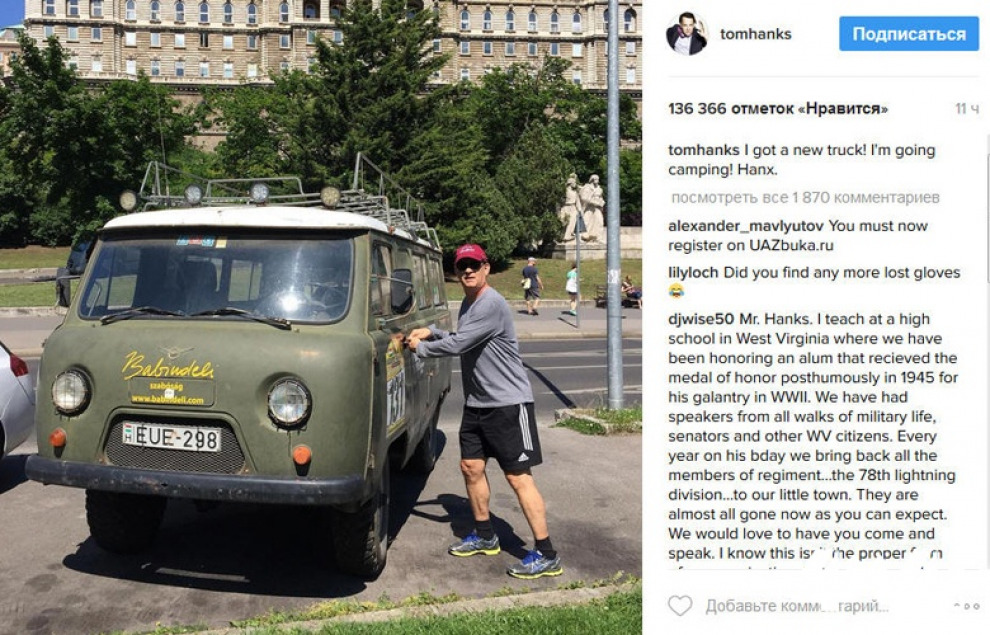 Том Хэнкс похвастался УАЗ "Буханкой"