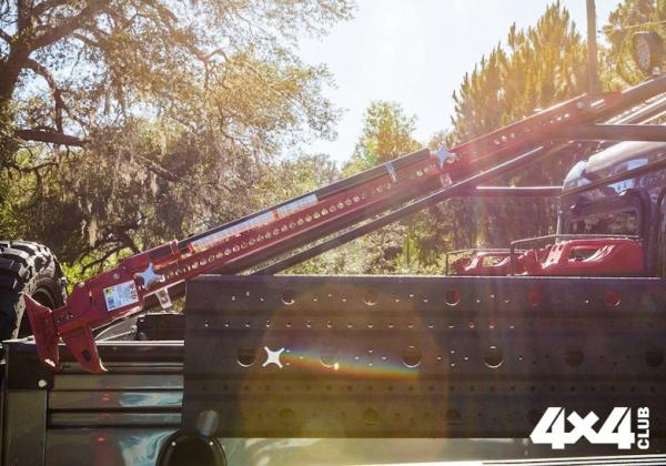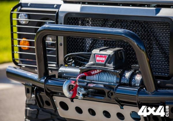 Внедорожник дополнительно получил 20-дюймовые колесные диски с покрышками Nitto Mud Grappler, лебедку на переднем бампере, светодиодные фонари на крыше, металлическую защиту днища и порогов, внешний каркас, санд-трак, инструменты и канистры для топлива в грузовом отсеке.
