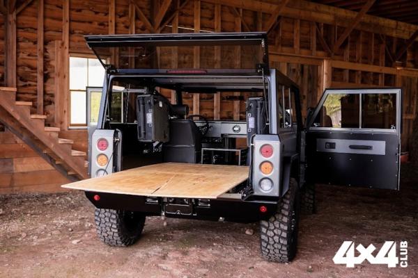 Грузовая платформа новинки способна к трансформации: для нее предлагается жесткий верх и дополнительные сиденья. Таким образом, пикап может превращаться в четырехместный трехдверный внедорожник. Кроме того, конструкцией пикапа предусмотрена регулируемая подвеска с отключаемыми стабилизаторами, при помощи которой Bollinger B1 может менять дорожный просвет в диапазоне от 250 до 500 мм.