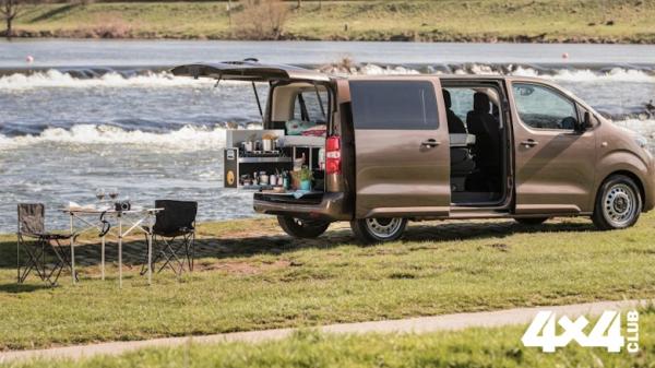 Proace для путешественников был подготовлен в сотрудничестве с профильной компанией QUQUQ. В багажном отсеке вэна появился раскладывающийся бокс, где находятся плита и всяческая кухонная утварь. В нем же установлен резервуар с водой и мини-раковина.