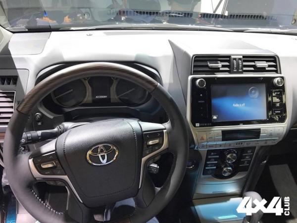 Над интерьером "Прадо" дизайнеры поработали более вдумчиво, в результате чего появились полностью новые передняя панель, приборный щиток с 4,2-дюмовым дисплеем, центральная консоль и рулевое колесо, заимствованное у старшего Land Cruiser.