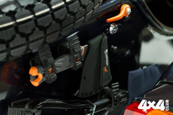 По сути, перед нами – все тот же старый добрый Урал, но с набором плюшек и свистелок. Комплектация включает еще одну фару, диодный фонарик, саперную лопатку, топорик, водостойкие спички, и канистры. Есть и фляга для водки со стаканчиками — при поездке на Байкал зимой без этого ну никак.