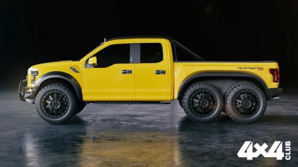 Строится трехосный пикап на базе заводского Ford F-150 Raptor SuperCrew. При этом пикапу удлиняют погрузочную платформу, имплантируют дополнительную ось и пересобирают подвеску на гоночных компонентах фирмы Fox. Попутно VelociRaptor становится обладателем тормозных механимов Brembo, усиленных бамперов с защитными вставками, внедорожной резины, светодиодной оптики и тому подобное. Кроме того, в Hennessey уже заявили, что готовы построить и бронированный вариант пикапа.