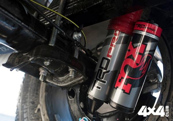 Амортизаторы модели 4Runner имеют семь и 11 перепускных зон спереди и сзади соответственно. Спереди дорожный просвет и ход подвески возросли на 25 миллиметров. Машина получила 17-дюймовые колеса с шинами Nitto Terra Grappler и багажник на крыше.