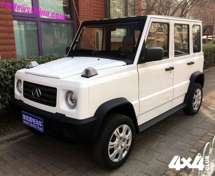 Китайский электромобиль получил узнаваемую внешность «гелика», но, в отличие от немецкого прототипа, выглядит не солидно, а, скорее, нелепо. Это неудивительно, ведь длина машины составляет всего 3290 мм, ширина — 1482 мм, высота — 1614 мм, колесная база — 2143 мм. То есть, по размерам китайский электромобиль сопоставим с тем же Smart Forfour.