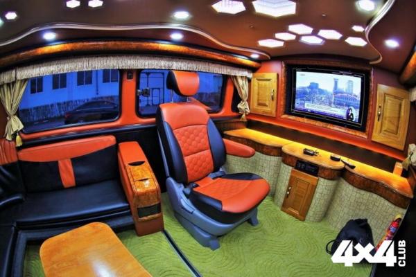 Не секрет, что самый популярный транспорт среди жителей Монголии - это классические модели марки УАЗ, которые мы привыкли называть «буханками». Казалось бы, переделкой «буханки» сейчас никого не удивить... Но монгольская мастерская MXM смогла это сделать! Кстати, МХМ расшифровывается как Moторт Хулгийн Мастер, что можно перевести «Мастера, Рыцари, Моторы» (здорово, если среди наших читателей есть знатоки монгольского, которые смогут нас поправить). Как рассказывает «Уазбука», первым этапом создания VIP-внедорожника были кузовные работы, за которыми последовала доработка шумоизоляции, а также расстановка «мебели» - подиумы сделали из влагостойкой фанеры, а бары и тумбочки построили на основе металлических каркасов, также обшитых влагостойкой фанерой. В проёме между кабиной и пассажирским отсеком появился телевизор на поворотном шарнире. От задней двери отказались полностью - вместо неё теперь «глухая стена». Интерьер отделан искусственными кожей и деревом, а в потолке установлены оригинальные светодиодные светильники. А главное - это сочетание казалось бы несочетаемых цветов...