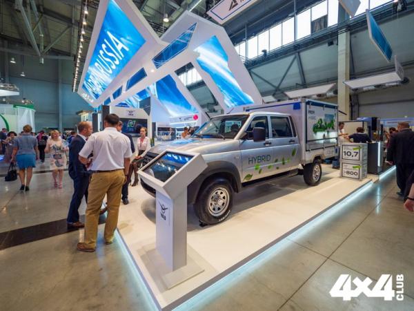 УАЗ представил прототип грузовика с гибридной силовой установкой. Премьера автомобиля состоялась на международной промышленной выставке «Иннопром-2018» в Екатеринбурге. Новинка разрабатывалась совместно со специалистами ФГУП «НАМИ». Она получила пятиместную кабину и фургонную надстройку грузоподъемностью до полутора тонн. В состав гибридной силовой установки вошел бензиновый 2,3-литровый атмосферный двигатель, выдающий 131,6 л.с. и 214 Нм крутящего момента, 126,4-сильный электромотор, 364-киловаттная батарея на 14 кВт-ч, а также шестиступенчатая автоматическая коробка передач.