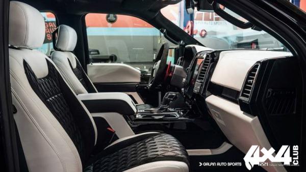 Компания Galpin Auto Sports построила для YouTube-блогера Salomondrin особый Ford F-150 Raptor. Пикап оборудован widebody-обвесом и красными 20-дюймовыми колесными дисками 1221 Wheels. Интерьер «Раптора» отделан кожей и алькантарой, потолок сделан в стиле Rolls-Royce — как звездное небо. Для управления основными функциями автомобиля на центральной панели установлен 12-дюймовый дисплей.