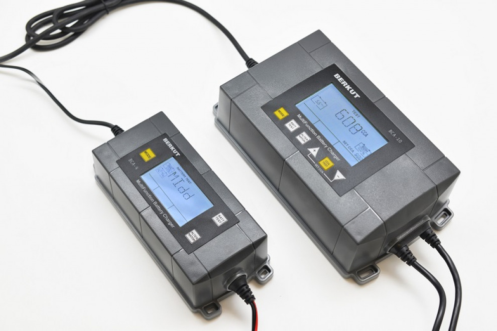 По большому счёту, зарядные устройства бывают двух типов – трансформаторные и импульсные (которые ещё называют умными или микропроцессорными). Отличить их проще всего по весу и габаритам. Мощный трансформаторный прибор лёгким не бывает. Импульсные же, наоборот, лёгкие и достаточно компактные. Они умеют поддерживать нужный заряд в стационарных условиях, скажем при длительной парковке в холодном гараже, и автоматически меняют ток в процессе. Ну и ток заряда может быть таким, какой нужен аккумулятору. Хороший пример профессиональной автоматической «зарядки» нового поколения – импульсное устройство Berkut Specialist BCA-10.