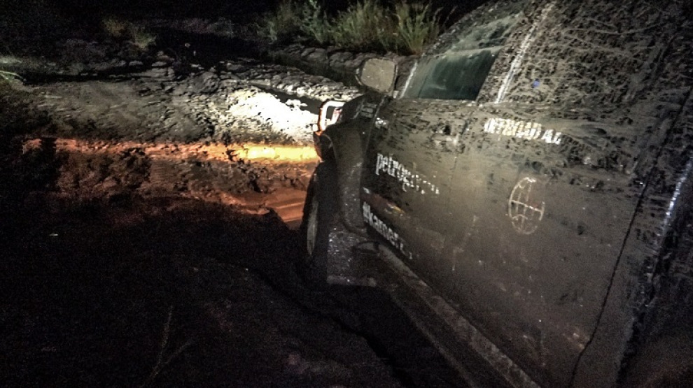 Картина была эпической: ночь, орущие лягушки, камыш выше человеческого роста, повсюду снуют и галдят местные, непрерывно идёт дождь и первый же наш Hilux неудачно соскальзывает в грязь… Начинается реальный офф-роуд – с лебёдкой и стравливанием давления в шинах. Одно неверное движение – и автомобиль скатится или налево в лужу, или направо в заросли высокой травы. С третьего захода мы медленно, но успешно преодолели самый сложный участок, а машина покрылась красивым ровным слоем грязи… Но тут из темноты вынырнули люди с автоматами наперевес.