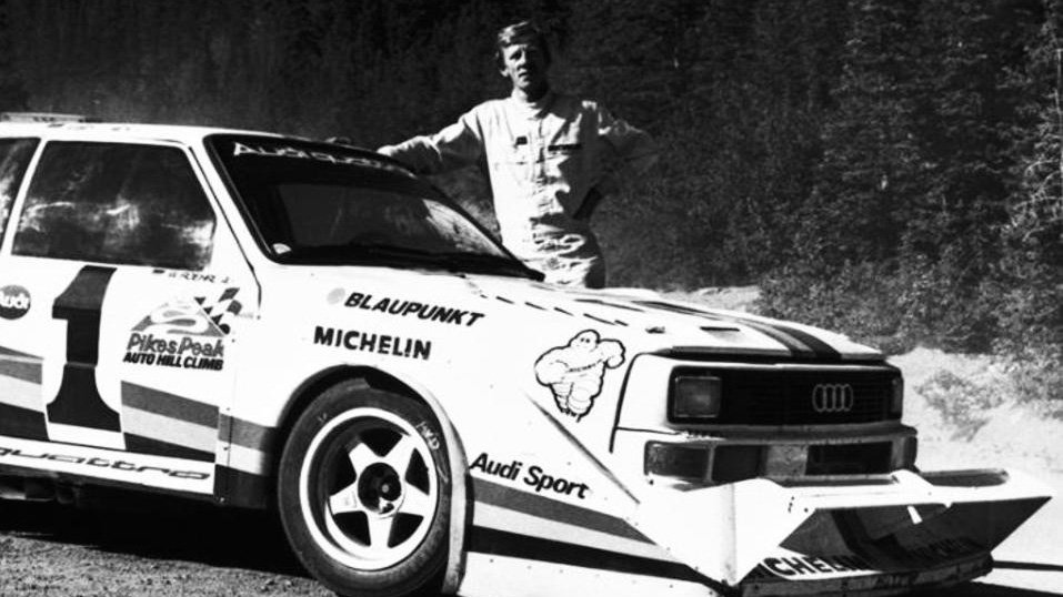 Третий раз подряд Audi выигрывает гонки Pikes Peak. За рулем quattro S1 — Вальтер Рёрль, показавший новое рекордное время.