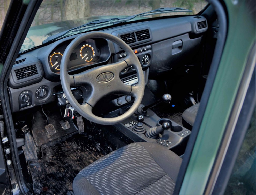 Нынешний рестайлинг при всём его триумфе оказался половинчатым. Новая передняя панель вполне уместна прежде всего из-за полноценного блока управления климатом. Приборы от «Калины» выглядят немного чужеродно, но к ним быстро привыкаешь, и клоунские стрелочки не режут глаз. А вот компьютер – вещь чрезвычайно полезная! Разве только управление а-ля хиты 1980-х с помощью тоненького штырька, ютящегося в уголке приборного щитка, выглядит, скорее, недоработкой. Новая центральная консоль между передними креслами в точности повторяет тюнинговый вариант одной популярной тольяттинской фирмы, и нивоводы наверняка знают, какой. Равно как и потолочная панель с подсветкой и кнопками ЭРА-ГЛОНАСС. Вообще, обновлённая LADA 4x4 внутри выглядит так, будто над ней работал гаражный тюнер – эти элементы по отдельности мы уже где-то видели. Но сделано всё с любовью и даже со вкусом.