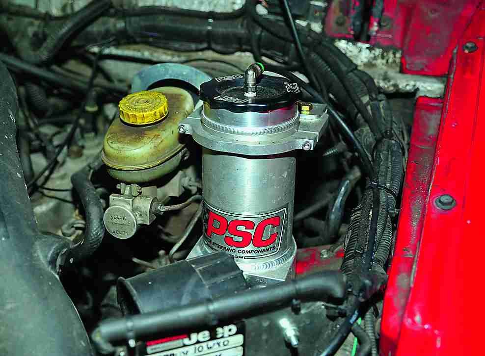 Наконец, пришла пора переобуться в новые колёса. С таким серьёзным лифтом шины Cooper STT размерностью 35*12,5 дюймов на штампованных дисках R15*10 смотрятся вполне органично. При этом мощный двигатель и усиленная трансмиссия вращают колёса без всякого труда. А для того чтобы гидроусилитель легко их поворачивал, штатный насос заменили на более мощный, от американской компании PSC.