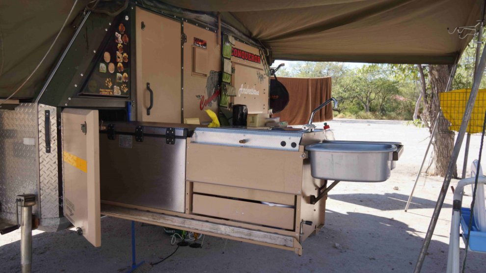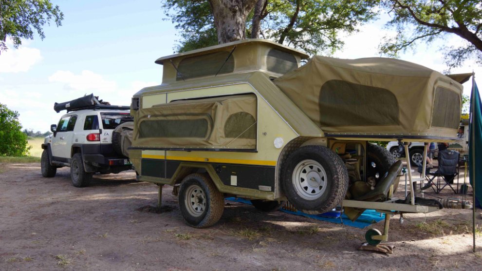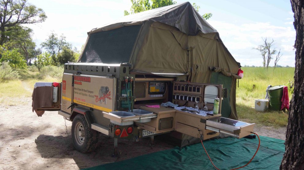 И представьте, несмотря на то, что мы живём на разных континентах и в разных странах, разговариваем на разных языках и имеем кожу разного цвета, все путешественники думают одинаково. Просто-таки в одном направлении! К примеру, в Южной Африке существует огромный выбор произведений прицепостроения как местных мастерских, так и именитых австралийских и американских компаний. Начинается всё с небольших дорожных прицепов, которые легко цепляются за обычные машины, микроавтобусы и пикапы, выполняя утилитарную роль, то есть перевозя нехитрый скарб местного населения. Обычно это прицепы различной конфигурации с крышками. Жёсткая крышка необходима для того, чтобы исключить криминальное вмешательство в путешествии между городами. Кроме того, обязательным атрибутом всех без исключения прицепов является запасное колесо (а лучше два), потому что качество дорожного покрытия и проколы сильно подкашивают неподготовленных африканских путников.