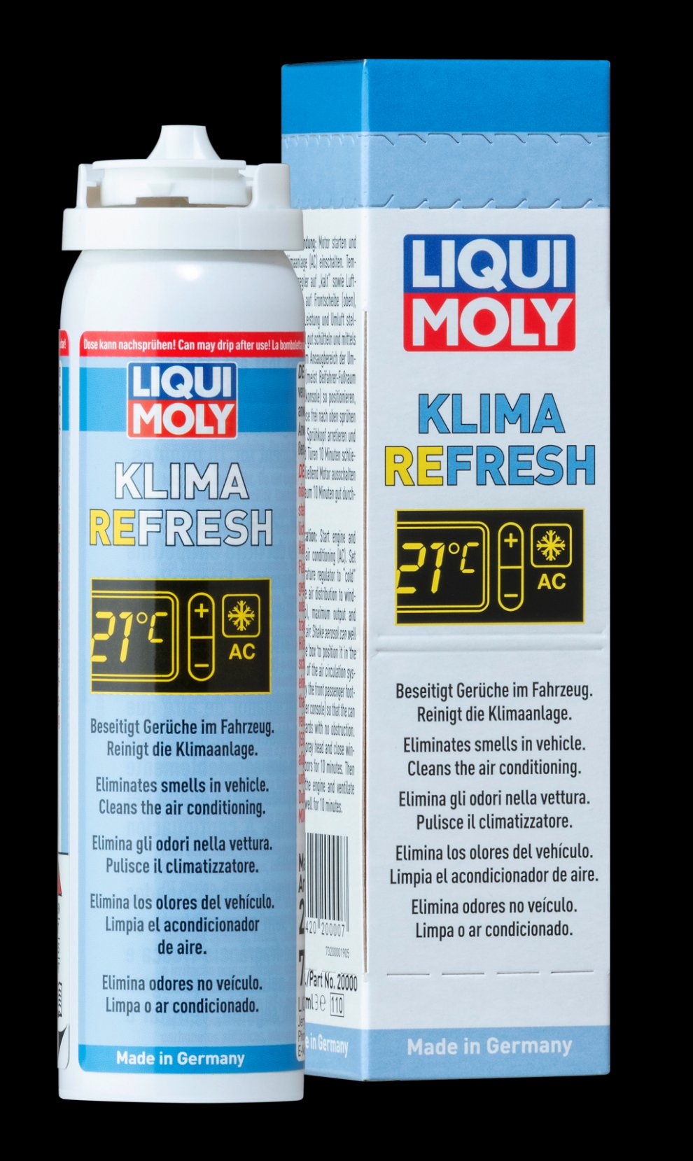 Наш постоянный партнёр Liqui Moly, например, предлагает самостоятельным владельцам автомобилей с кондиционером препарат под названием Klima Refresh, который объединяет в одном флаконе сразу несколько полезных свойств: очистка, освежение и дезинфекция. Недавно он заменил популярный на нашем рынке Klima Fresh Plus, радикально обновив систему распыла, которая обеспечивает чрезвычайно мелкую дисперсию частиц активного вещества. Ну и немного усовершенствовал формулу. В остальном, состав по-прежнему эффективно борется и с бактериями, и с грибком, и со скверным запахом, но теперь эффект биоцида третьего поколения сохраняется на весь сезон. Если быть совсем уж точным, то до полугода!