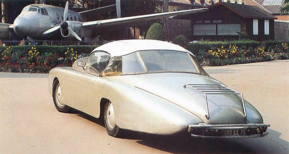 Однако в 1951-м он внезапно порадовал публику заднемоторным семейным автомобилем. И это стало последним творением художника, его лебединой песней. Полупрозрачный каплевидный автомобиль, с отполированными до блеска дверями из алюминия, в котором не было стоек, в их привычном нам понимании — вместо них причудливо согнутые алюминиевые трубки, а вместо крыши Арзанc установил огромный кусок плексигласа.