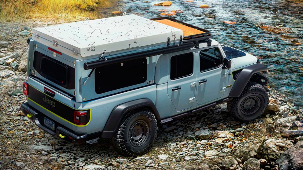 Jeep Gladiator Farout построен для так называемого «оверлендинга», длительных поездок за город, которые стали особенно популярны из-за пандемии коронавируса. Компания решила предложить внедорожник, изначально максимально подготовленный для таких путешествий. Отличительной чертой модели является огромная, почти пятиметровая палатка на крыше, рассчитанная на четырёх человек.