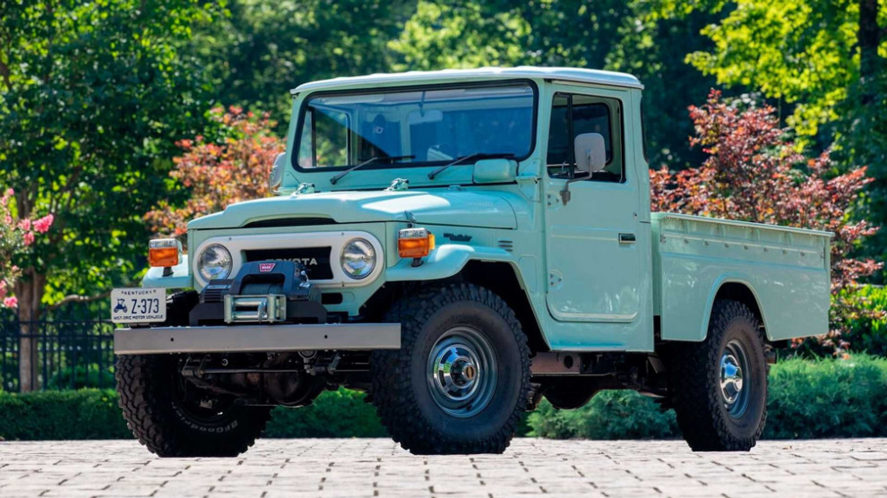 На американском аукционе «Mecum Auction» выставили на продажу любопытный рамный ретро-пикап Toyota Land Cruiser FJ-45 1973 года выпуска. Восстановленный и к тому же подвергнутый серьёзному тюнингу.