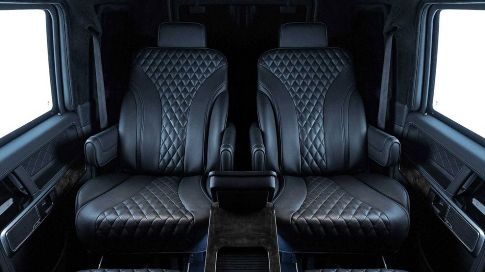 G63 VIP Limo оказался на 1,37 метра длиннее стандартного внедорожника и растянулся до 6,186 м. Колёсная база увеличилась до 4,374 м. Для сравнения, чтобы было понятнее, это общая длина кроссовера Mercedes-Benz GLA. Но несмотря на солидную прибавку, количество мест в автомобиле осталось прежним.