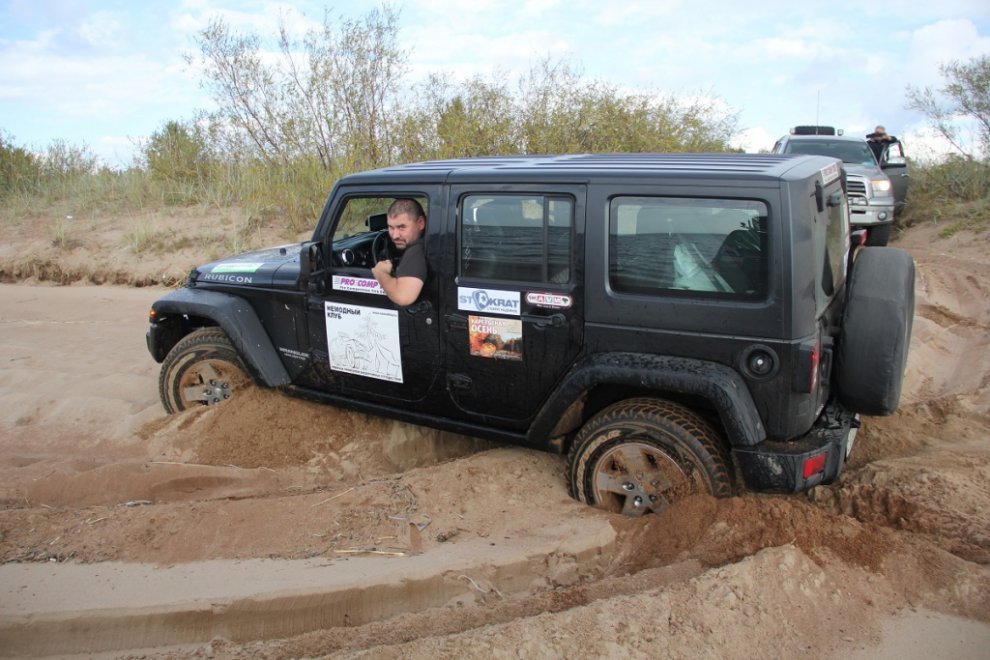 В этом случае картина обратная. Частицы отказываются взаимодействовать между собой в принципе. Наиболее яркий представитель этого грунта – мелкий сухой песок. И несмотря на полную противоположность его характеристик пластичному типу ситуация с накатыванием колеи примерно та же – фрикционный грунт просто пересыпается под колесом, не образуя колеи. При движении по нему на первое место выходит давление в шине и её ширина. Чем шире резина и ниже давление, тем увереннее идёт машина (о том насколько и для чего следует спускать колёса, мы поговорим в следующем номере). Грунтозацепы здесь, увы, практически никак не помогают при движении, потому что во фрикционном грунте им не за что цепляться.