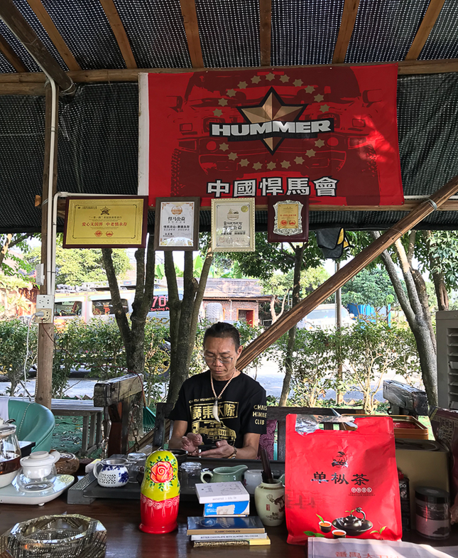Мы обменялись подарками. Я вручил мешок шоколадных конфет «Мишка на Севере», матрёшку и пачку наклеек Российского Hummer-клуба. Ответным подарком были флажки Китайского Hummer-клуба и банка чая Да Хун Пао.