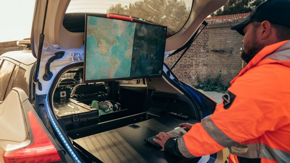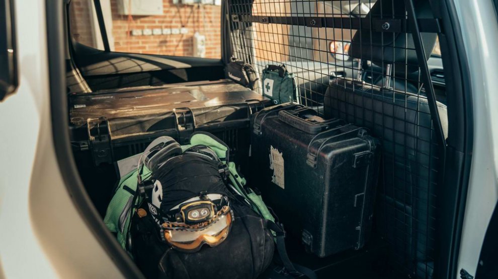 В багажном отделении разместили центр управления с 32-дюймовым экраном, на крыше — светодиодную балку. Задний диван был убран, а освободившееся пространство выделили под снаряжение.