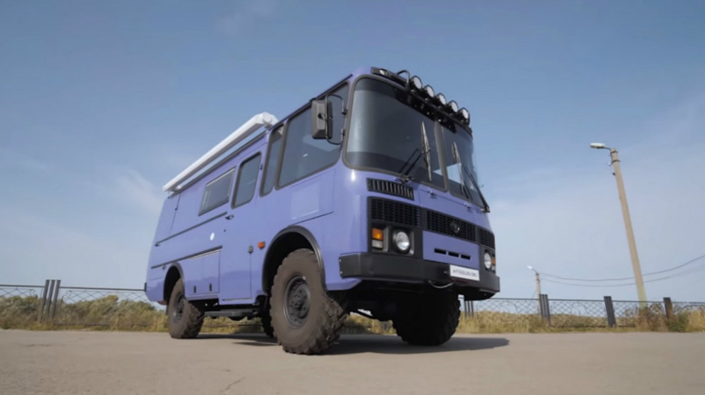 Автодом на базе «ПАЗ» оснастили солнечными панелями, люками на крыше, выдвижным тентом-маркизой, отопителем, разъёмом для заправки бака с водой, силовым бампером с лебёдкой, оригинальной оптикой и дополнительным освещением, а также багажным отделением в задней части автобуса.