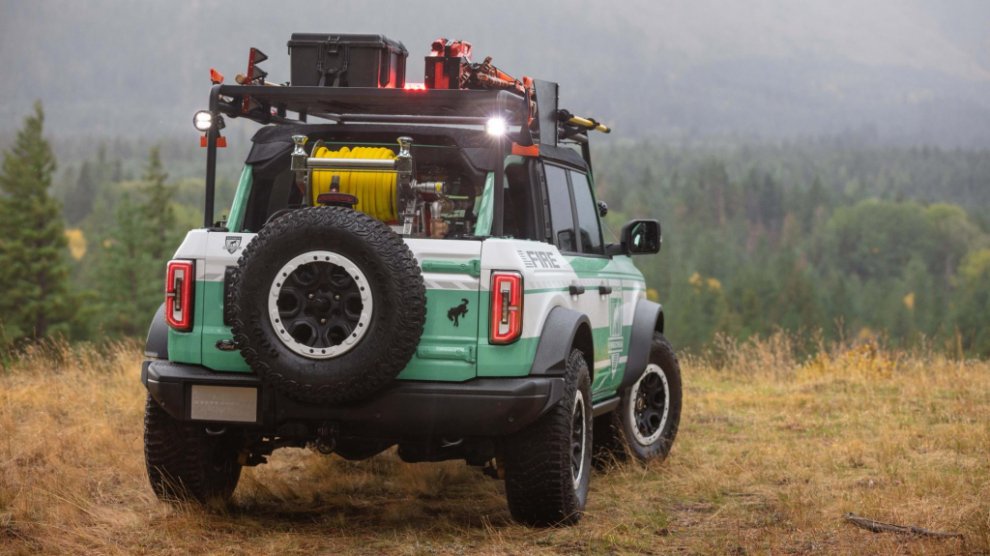Основанный на четырехдверной версии Bronco Badlands с пакетом Sasquatch, он окрашен в зеленый цвет Forest Service Green — аналогично первому поколению US Forest Service Bronco. В багажнике у него установлена система пожаротушения с 50-галлонным баком для воды.