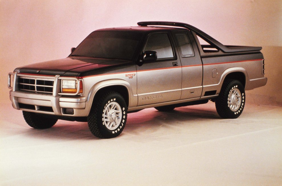 Для более уверенного старта новой Dakota выпустили крайне ограниченную серию Rod Hall (насколько ограниченную, неизвестно даже историкам), на которой подвеска была усилена мощными амортизаторами Rancho, появились литые диски Shelby, а мотор 3.9 л был форсирован до 140 л.с. В 1988 году представили первый почти спортивный Dodge Dakota Sport, с короткой базой и весом 1617 кг (в версии 4x4). Он отличался оригинальной окраской в чёрный, красный и белый цвета и некоторыми элементами декора. Мощности не прибавилось, зато появилась 4-ступенчатая АКПП с повышающей передачей. А за счёт всевозможных доработок разгон до 60 миль/ч занимал вполне приемлемые 11,3 сек. В следующем году на базе этой Dakota выпустили кабриолет! Между прочим, впервые с 1933 года, когда Ford прекратил производство пикапа «Модели B» с откидным верхом. Машина создавалась при участии ASK (American Sunroof Company), и переделки были минимальными – стальную крышу срезали, а вместо неё поставили дугу безопасности и вварили усилители жёсткости. Ну и само собой, добавили тент с мутным пластиковым окошком и примитивнейшей механикой, из-за чего работать с ним было ничуть не легче, чем с Ford в начале 1930-х. Зато именно на Dakota Sport Convertible (на первом среди крайслеровских пикапов) появилась АBS. Правда, действовала она только на задние колёса. Но эта была прелюдия...