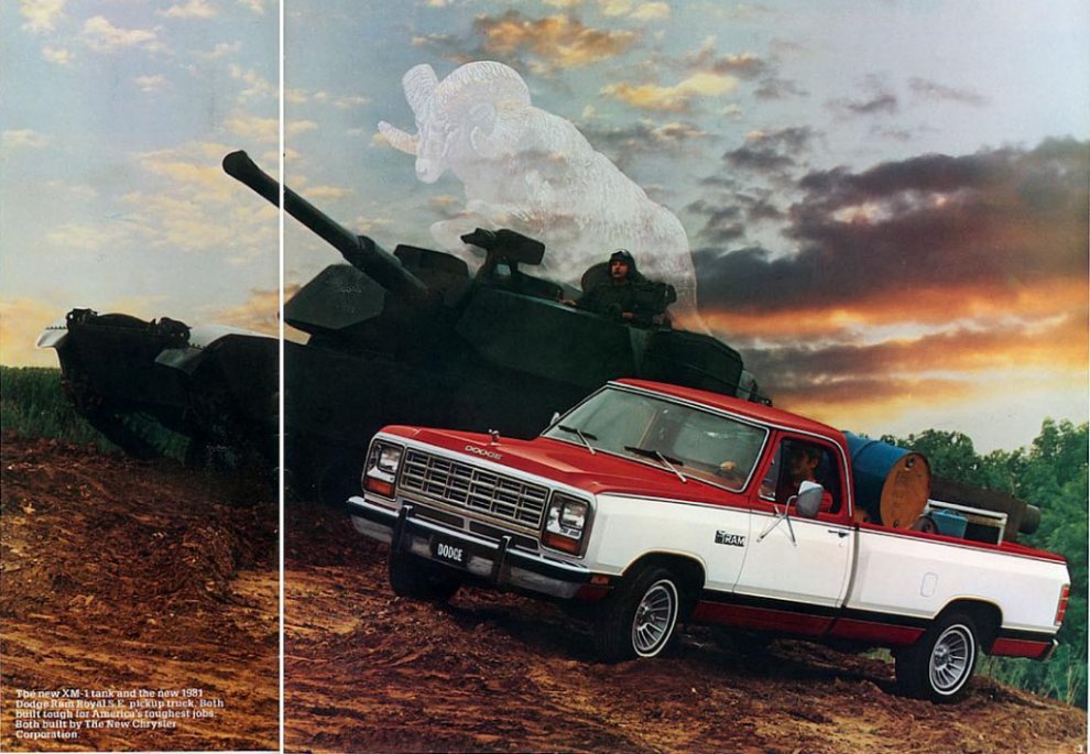 Однако в том же году на обложках рекламных проспектов компании Dodge, принадлежащей Chrysler, появилось изображение головы архара (которого часто называют просто бараном), что должно было символизировать прочность и упорство в работе. А в 1981 году все пикапы Dodge официально стали называться Ram, то есть баран, и по этому случаю даже вернули фигурку животного на капот (впервые со второй половины 1950-х). Жаль только, что вместе с водой выплеснули и ребёнка – в том же 1981 году упразднили историческую полноприводную серию Power Wagon, которую переименовали в Power Ram.