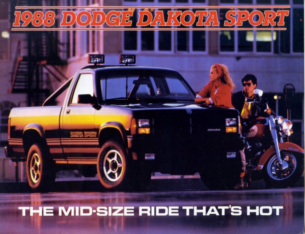 1987 год. Презентация лёгкого среднеразмерного грузовика Dodge Dakota, построенного на новой платформе N. С грузоподъёмностью в 570–1130 кг и мотором V6 (125 л.с.) машину иронично нарекли «самым горячим пикапом в городе»