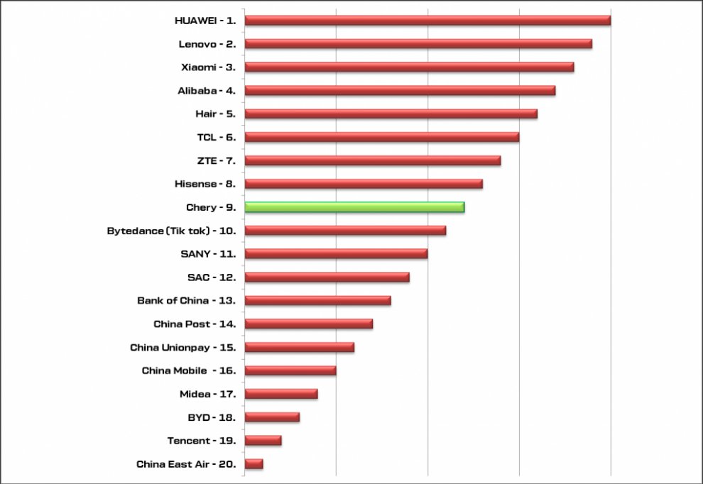 Важно отметить, что на 10-ом месте, сразу за CHERY, разместилась китайская компания ByteDance, подарившая миру TikTok.