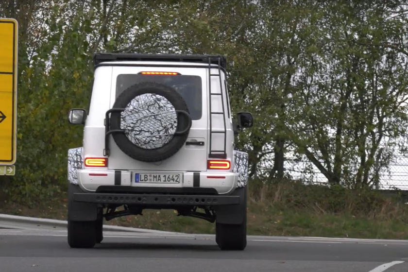 Машина явно не в своей тарелке, но наблюдать за ней всё равно интересно. Кстати, впервые этот хардкорный вариант G-класса был замечен в сентябре, на высотных испытаниях в Альпах. В ролике видно, как неуклюжая масса входит в повороты со значительными кренами кузова и визгом шин. Спереди и сзади автомобиль частично покрыт маскировочной плёнкой, включая массивные колёсные арки. В отличие от стандартного G-wagen, передняя решётка снабжена большими воздухозаборниками снизу и тоже затемнена, чтобы скрыть мелкие детали. Под задним бампером есть металлическая ступенька и откидывающаяся калитка запасного колеса.