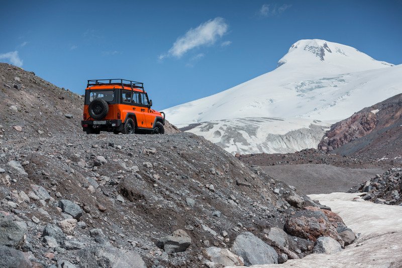 Подняться на Эльбрус пытались многие моторизованные альпинисты, но первенство в автомобильных восхождениях на самую высокую гору Европы принадлежит УАЗу. В 1974 году три стандартных УАЗа 469Б добрались до эльбрусского ледника на высоте 4 200 м над уровнем моря. Спустя 45 лет мы проехали по их следам, но уже за рулём современных ульяновских внедорожников.