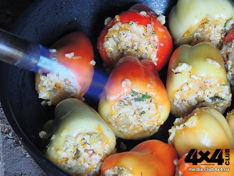 Но мы попробуем лучше нафаршировать перец – красивейший овощ, будто специально созданный природой в виде формы для начинки. С ней, кстати, мудрить тоже не будем, то есть оставим в покое мясо и рыбу. Приготовить из них начинку в полевых условиях – процесс достаточно трудоёмкий, да и на вкус может не всем понравиться.