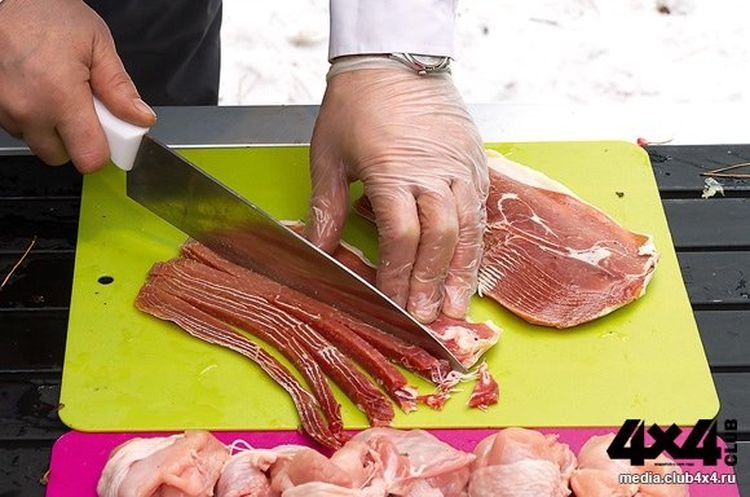 Главное, запастись острыми ножами. Особенно пригодится маленький, лучше фруктовый ножичек. И чтобы не было сильного мороза, ну а если таковой предвидится, лучше все предлагаемые операции выполнить накануне дома, в тепле, а из «отходов» (косточек, хрящиков и оставшегося на них мяса) сварить ароматный бульон, который послужит основой для супа или соуса.