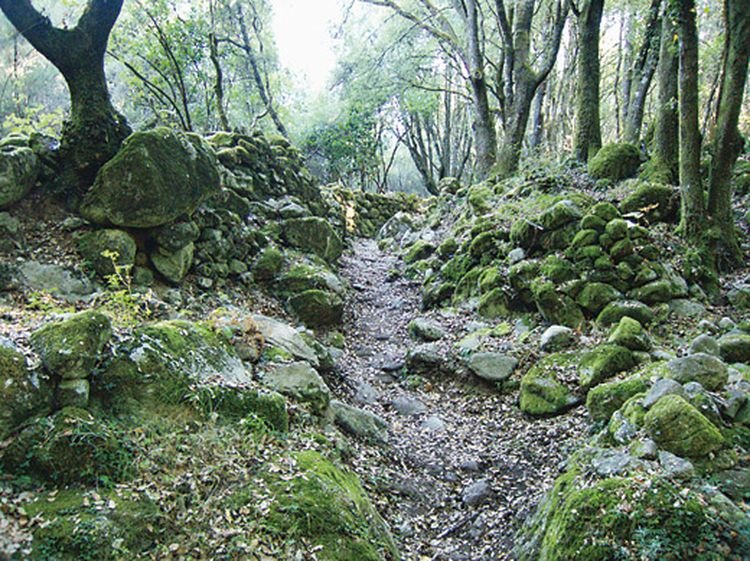 Немного севернее не все реки пересохли, и пару раз пришлось окунуться в броды. Здесь гораздо больше леса, в котором тоже скрываются загадки. Жилища древнего человека и изваяния, похожие на истуканов острова Пасхи. Не обозначенные ни в каких путеводителях, уходящие на сотни метров в чащобу древние лабиринты из огромных камней и развалины явно донаполеоновской эпохи. Автобана, как на Сардинии, здесь нет, а горные дороги весьма опасны, поскольку второго ряда на них не предусмотрено и перед поворотом рекомендуется сигналить, что мы исправно делали.