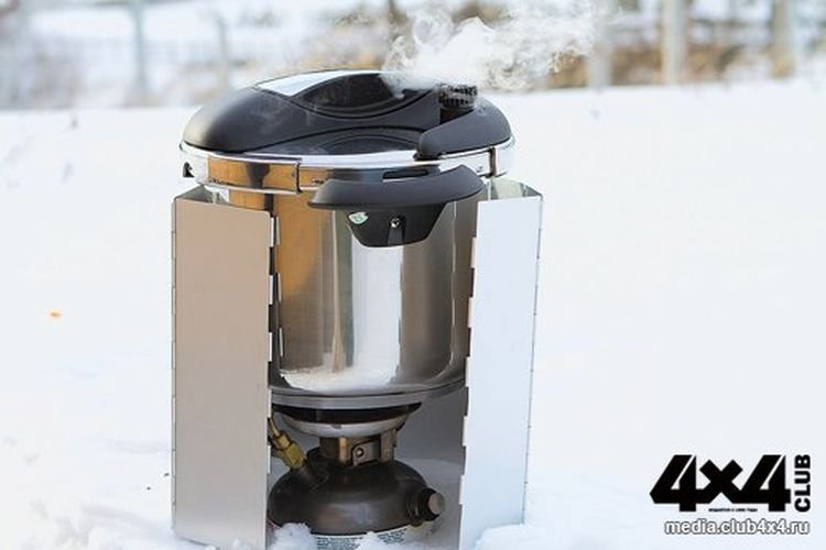 Кстати, чтобы засыпать в скороварку ингредиенты в процессе готовки, её приходится снимать с огня и ждать, пока упадёт температура и давление внутри, иначе можно получить серьёзный ожог струей пара. Зимой на природе достаточно поставить кастрюлю в сугроб – она остынет практически мгновенно.