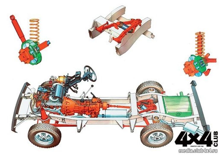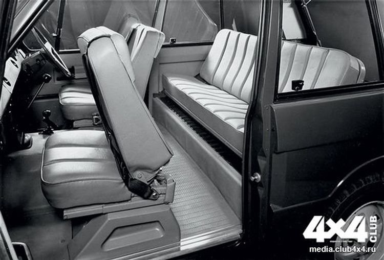 Поначалу Range Rover можно было назвать шикарным разве что в сравнении с такими незатейливыми рабочими лошадками, как советский «уазик» или американский Jeep CJ5. Судите сами: ни кондиционера, ни АКП, ни богатой отделки – только легко и быстро моющийся винил, пластмасса и резиновые коврики на полу. Характерно, что часть новых английских внедорожников даже переделывали в санитарные фургоны и пожарные машины. Причём существовали как варианты с колёсной формулой 6х6, так и 4х6 (с обделённой приводом третьей задней осью).
