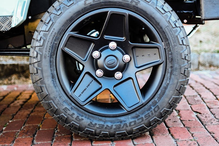 Модифицированный кузов покоится на совершенно новом шасси со стоковой подвеской, дисковыми тормозами по кругу и 20-дюймовыми колёсными дисками Kahn, обутыми в Cooper Discoverer AT.
