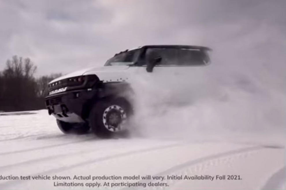 Крабовый режим помогает Hummer EV двигаться сквозь снег (видео)